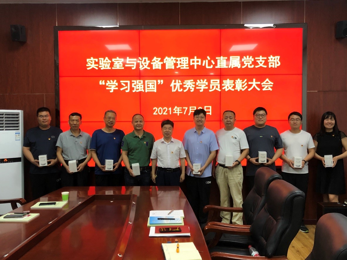 为进一步加强党史学习教育,推动“学习强国”学习平台推广使用工作,激发大家持续学习的热情,7月2日下午,实验室与设备管理中心直属党支部在D305召开“学习强国”学习平台先进个人表彰大会,对在“学习强国”学习平台中表现突出的先进分子予以表彰,会议由支部书记蔡子亮主持。