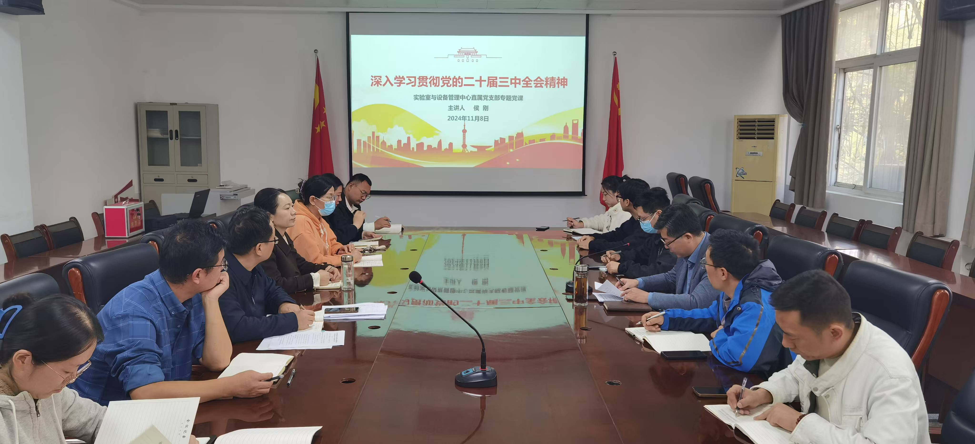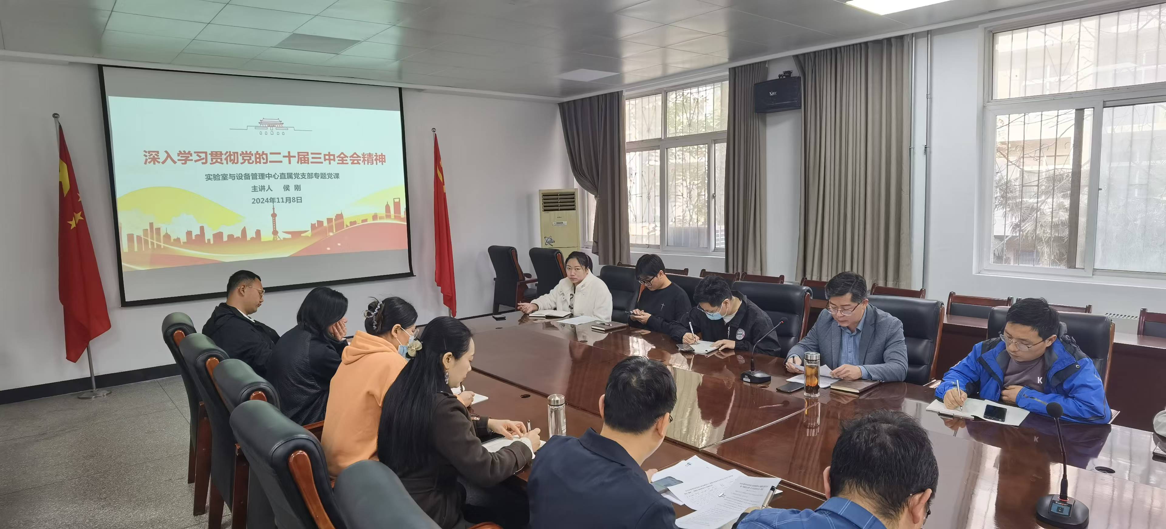 为进一步学习贯彻落实党的二十届三中全会精神,11月8日下午,在西启智楼208会议室,实验室与设备管理中心直属党支部书记侯刚以《深入学习贯彻党的二十届三中全会精神》为题,为全体党员和入党积极分子上专题党课。