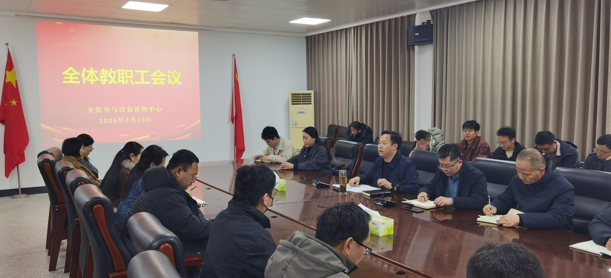 3月13日,实验室与设备管理中心在西启智楼208会议室召开全体教职工会议,对中心2026年工作进行安排部署。中心领导侯刚、刘雪锋、魏会廷出席会议,全体教职工参加会议,会议由直属党支部书记侯刚主持。