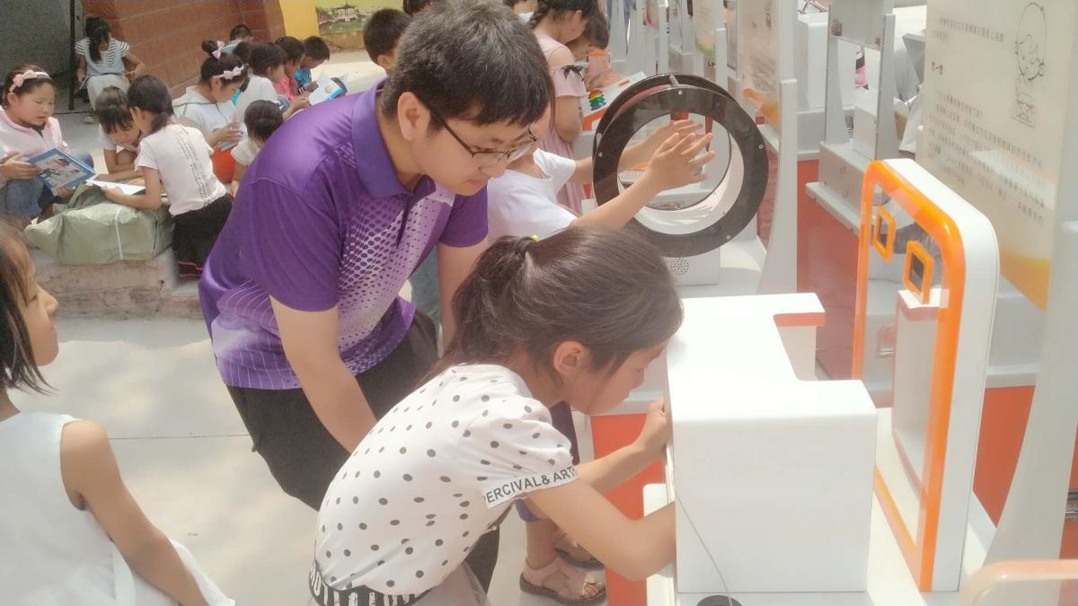 本次科普活动首先组织全体学生观看了我中心原创的《许小科历险记》系列科普微电影,宣传预防溺水和消防安全等科普知识。随后小朋友们进行了“科普大篷车”主题体验活动,大篷车为小学生提供了涵盖声、光、电、磁、力,数学、记忆等18种体验设备,如声光反应测试仪,短期记忆测试仪,电弧放电实验的“雅各布天梯”,伯努利定理的“听话的小球”,体现光电传感技术的“无皮鼓”和“无弦琴”等,面对科技的神奇,孩子们惊奇又兴奋;体验活动后,又为师生赠送《科学素质知识读本》和《慧眼识邪漫画月刊》300本。