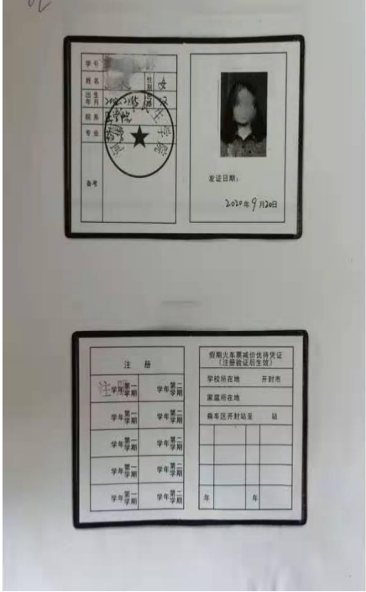(2)学生证复印件:复印第一页和第二页(照片、个人信息页及注册页)在一张A4上,需在注册有效期内。