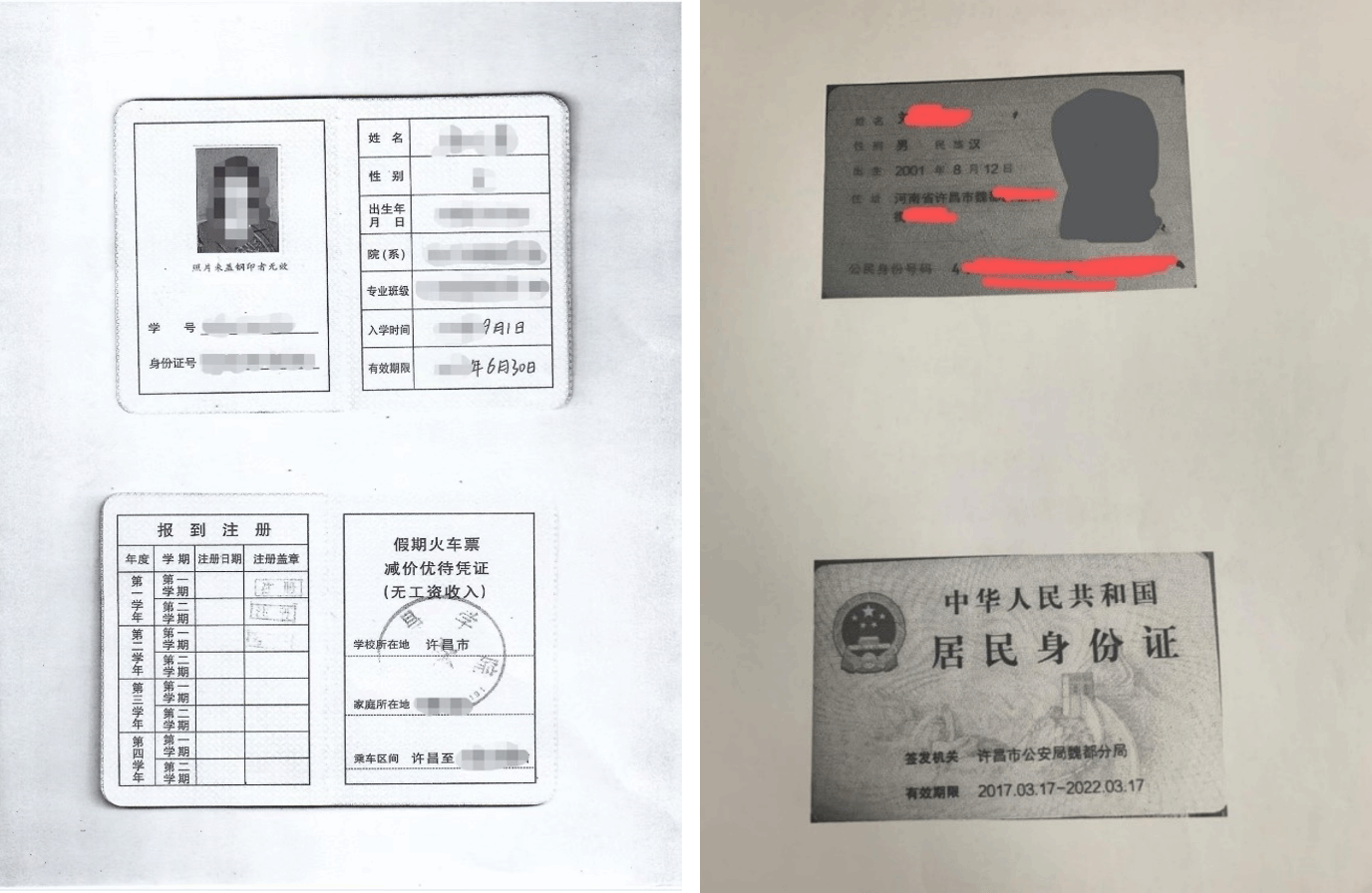 (2)学生证复印件:复印第一页和第二页(照片、个人信息页及注册页)在一张A4上,需在注册有效期内。