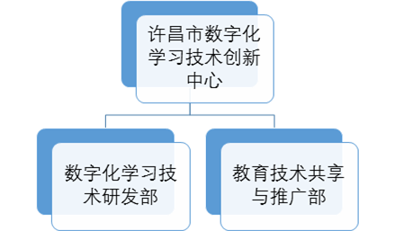 根据数字化学习应用技术创新中心建设需要,设主任1名,副主任1名,秘书长1人;设置数字化学习技术研发部、教育技术共享与推广部两个机构。