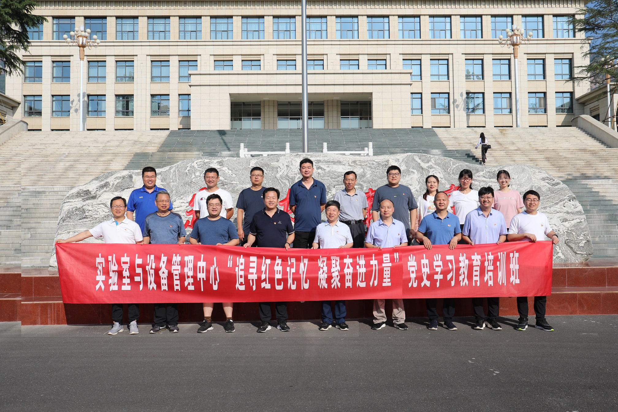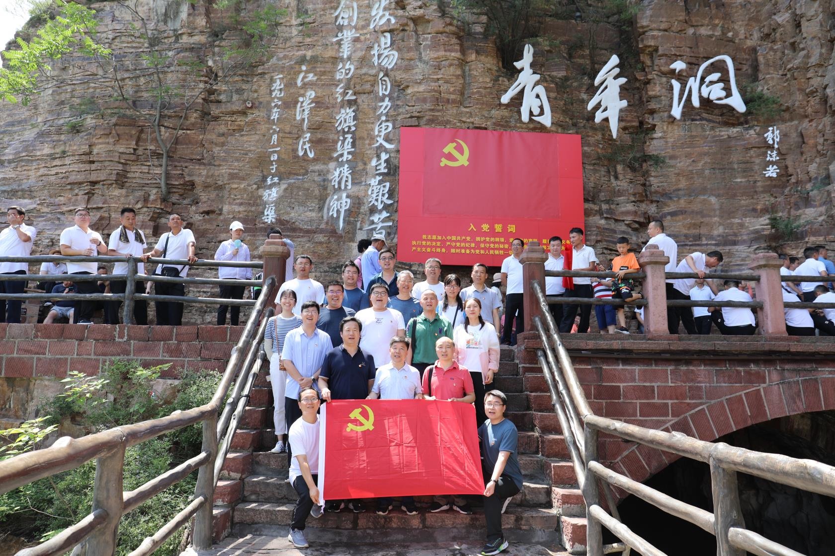 为庆祝中国共产党成立100周年,扎实开展党史学习教育,深入学习贯彻习近平新时代中国特色社会主义思想,继承和弘扬党的优良传统,学习自力更生、艰苦创业的奋斗精神,回顾无私奉献、团结协作的集体主义情怀,进一步提高广大党员和入党积极分子的能力素质、党性修养,7月3日-5日,实验室与设备管理中心直属党支部全体党员、入党积极分子在支部书记蔡子亮同志的带领下,赴林州红旗渠精神培训基地开展为期三天的“追寻红色记忆 凝聚奋进力量”红色教育培训班。