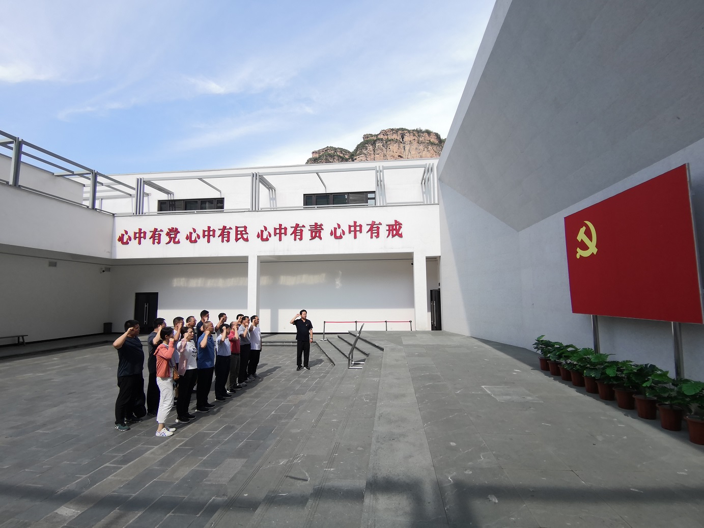 “我志愿加入中国共产党,拥护党的纲领,遵守党的章程…”面对鲜红的党旗,胸前的党员徽章熠熠生辉,全体党员同志高举右手,庄严肃穆地重温了一遍入党誓词,在宣誓声里共同表达对共产党的绝对忠诚和对革命先辈的无限崇敬。