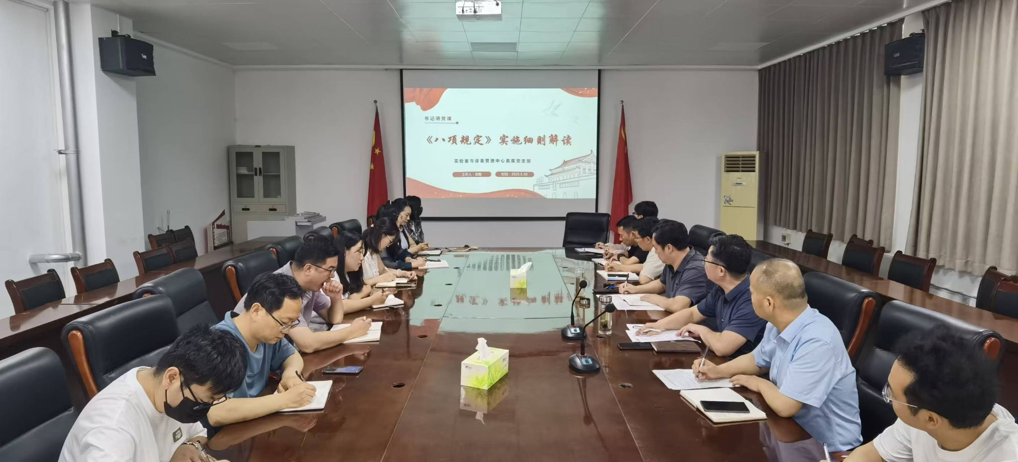 为进一步深入贯彻中央八项规定精神学习教育,5月30日下午,在西启智楼208会议室,实验室与设备管理中心直属党支部书记侯刚以《十八届中央政治局关于改进工作作风、密切联系群众的八项规定》(以下简称《八项规定》)实施细则解读为主题,为全体党员和入党积极分子上专题党课。