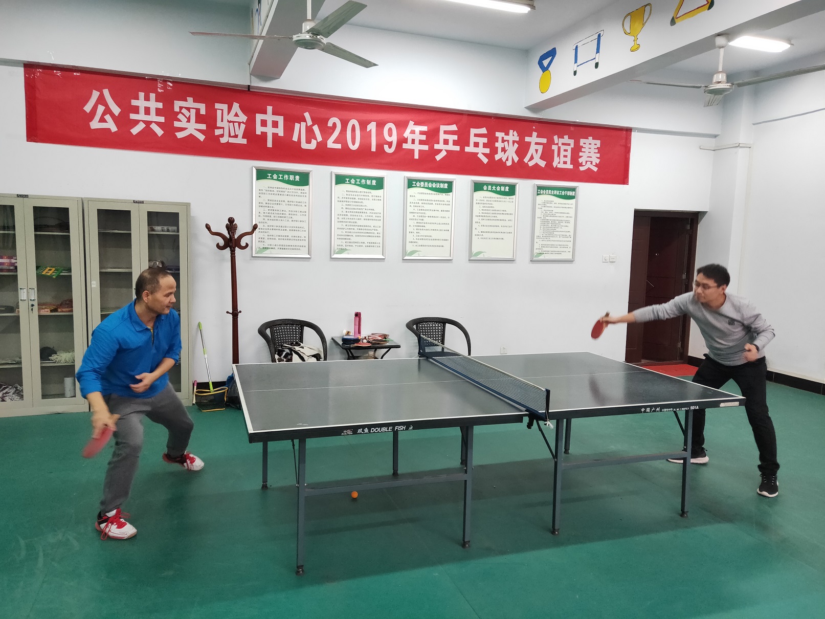 为迎接新中国成立70周年,丰富中心的文化体育活动,促进教职工之间的交流,发扬团队精神,增强中心的凝聚力,公共实验中心分工会于9月18日—20日举办2019年度乒乓球友谊赛,分工会32名运动员挥拍上阵,分别参加了男子单打、女子单打项目的角逐。