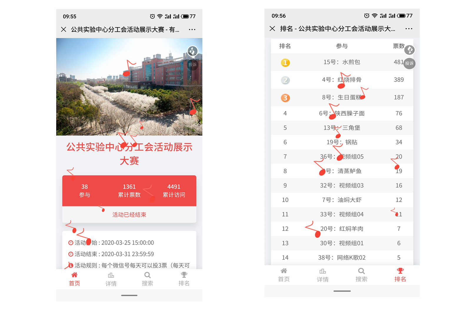 各位女教职工在家里认真准备,分别在自己家里拍下做菜过程及最后的成品,发到单位的微信群里。最后由公共实验中心分工会的全体会员担当大众评委,通过投票对参赛的作品进行点评,并给自己喜欢的作品投下一票。