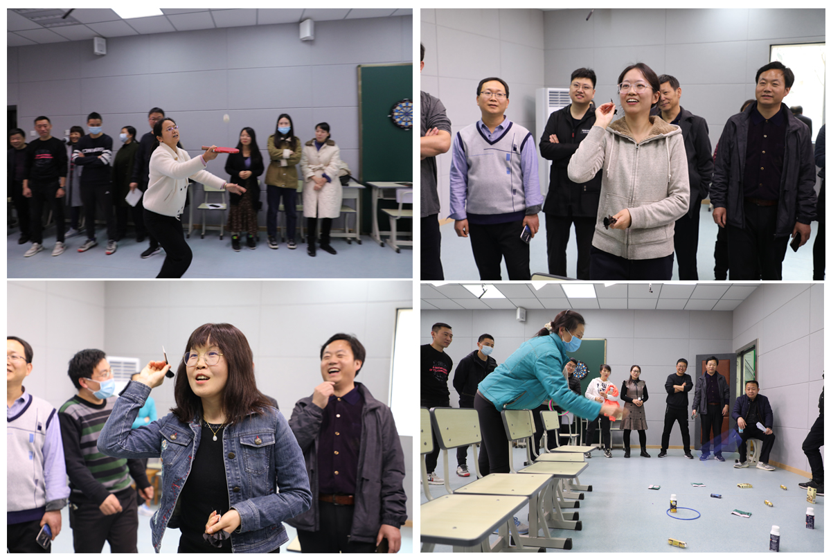 座谈会结束后,全体教职工举行了“你说我猜”、“乒乓接力”、踢毽子、飞镖打靶四个项目趣味文体活动。全体教职工在“你说我猜”中回顾了党史,在乒乓接力中增强了团队协作,在踢毽子和飞镖打靶中锻炼身体。活动中,教职工们暂时忘却了工作的忙碌和劳累,放松心情,感受快乐。在轻松愉悦的氛围中,释放最真的自我;在力量与技巧的完美把握中,诠释着我参与、我快乐的健康理念。
