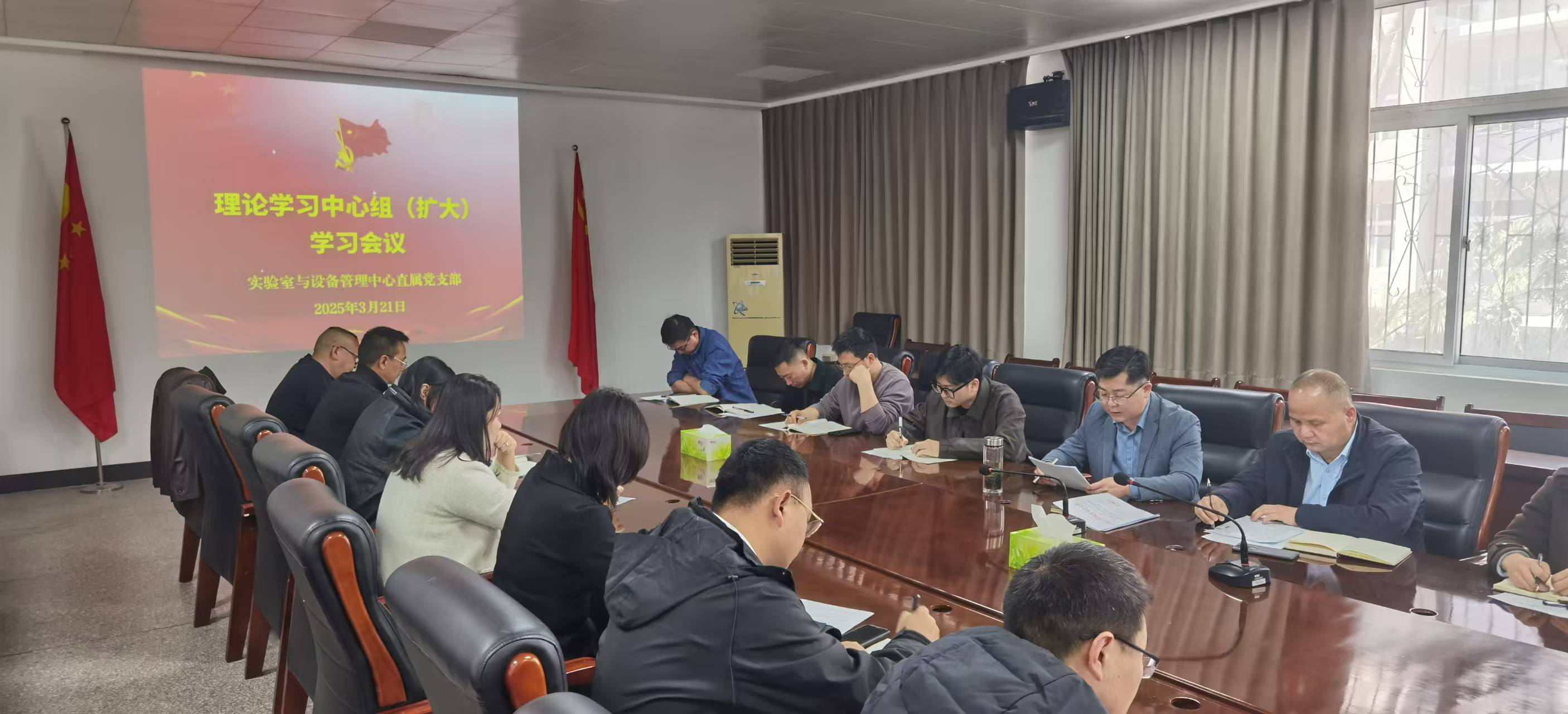 3月21日,实验室与设备管理中心直属党支部全体党员在西启智楼208会议室召开理论学习中心组(扩大)学习会议,会议由直属党支部书记侯刚主持。
