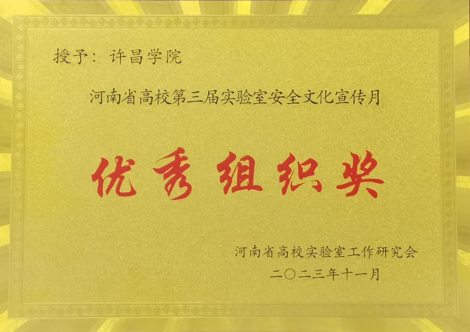 12月8日至10日,河南省高校实验室工作研究会2023年年会暨处长论坛在南阳召开,会上对河南省高校第三届实验室安全文化宣传月获奖单位和个人给予表彰。我校获“河南省第三届高校实验室安全文化宣传月优秀组织奖”,化工与材料学院学生王宇涛、申青银获河南省高校实验室安全知识大赛特等奖,数理学院学生张靖雯、城市与环境学院朱伟琦等8名同学获大赛一等奖。