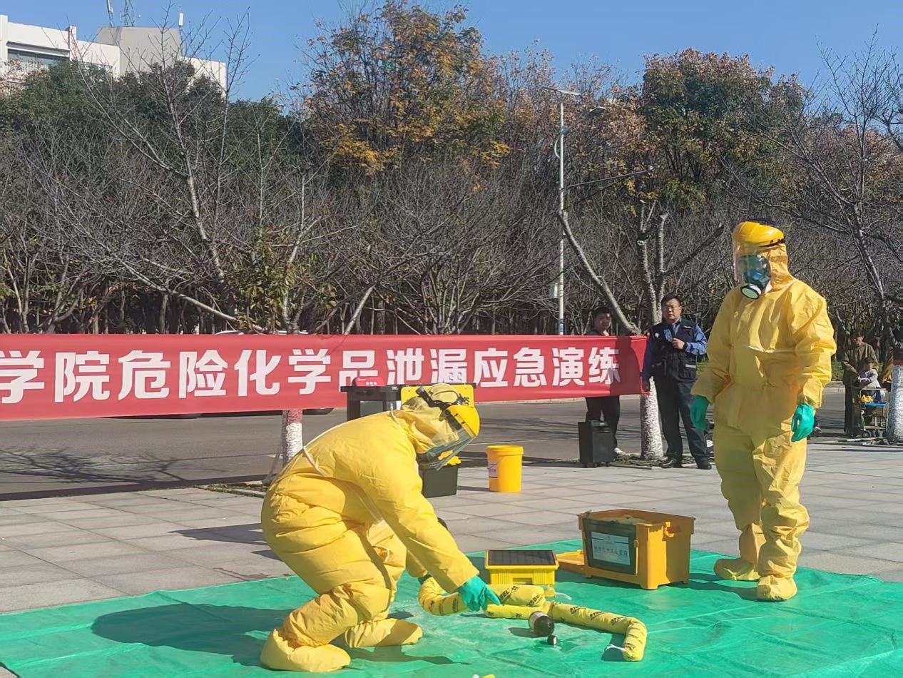 实验室危化品泄漏事故应急演练是我校实验室安全文化宣传月的重要内容,也是学校实验室安全管理重点工作之一,学校将定期开展各类应急演练活动,普及应急管理知识,提升广大师生自我防护意识和应急处突能力,为教学科研活动奠定坚实基础,为学校高质量发展保驾护航。(图文:王红祥 审核:刘雪锋)
